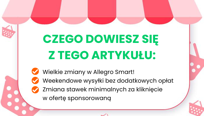Co nowego na Allegro w nadchodzącym czasie? PRZYPOMNIENIE! Wielkie zmiany w Allegro Smart Już 21 listopada wzrosła dla kupującego cena minimalnej kwoty Allegro Smart! za zakupy (gwarantująca darmową w...