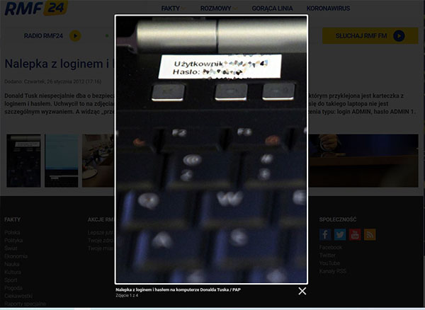 Login i hasło do laptopa z którego korzystał premier Donald Tusk: