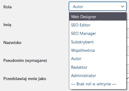 Zdefiniuj role użytkowników panelu admina strony